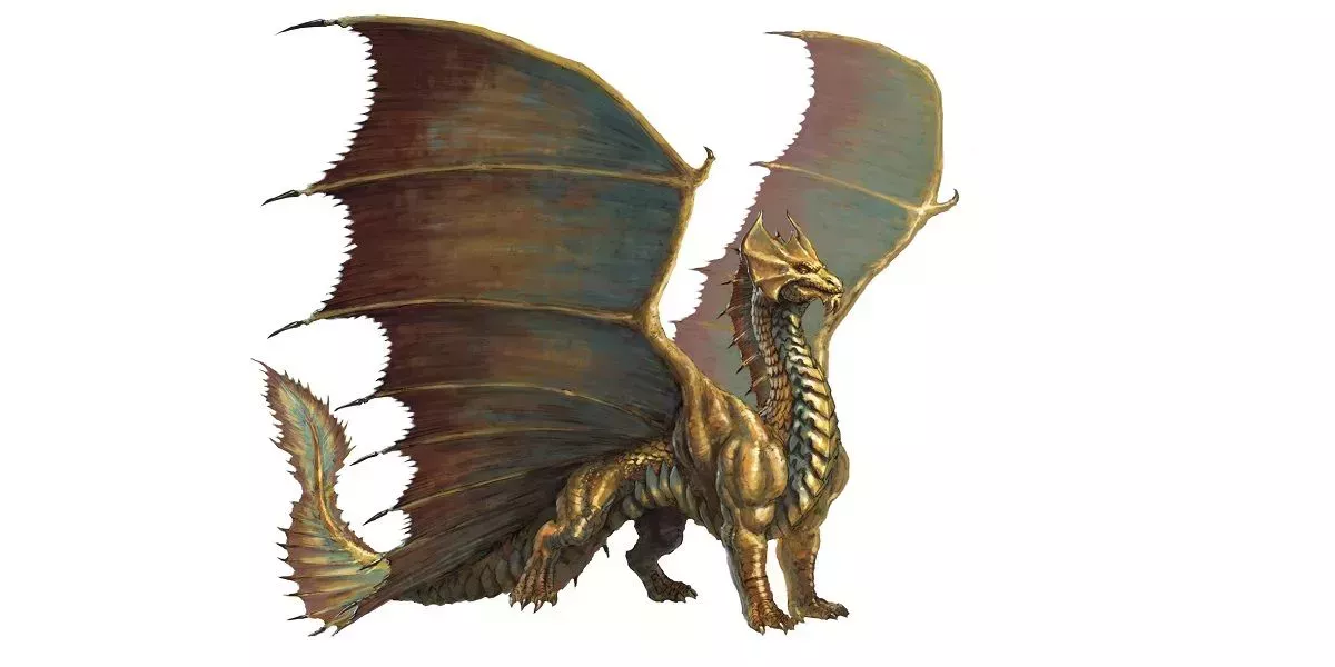 Losdragones dorados están en la cúspide de los dragones deD&D. Sus escamas doradas brillan majestuosamente cuando se mueven y exhalan conos de gran fuego para afirmar su autoridad. Los dragones de oro tienen su hogar en estructuras de piedra, grandes cavernas o castillos, y a menudo contratan a criaturas leales para que les sirvan de guardianes. Se designan a sí mismos como guardianes del bien, encontrando misiones que cumplir y castigando el mal si lo encuentran.