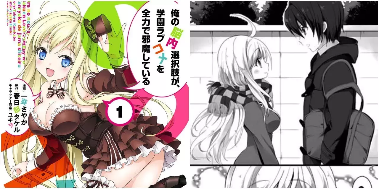 My Mental Choices Are Completely Interfering With My School Romantic Comedy es Ore no Nounai Sentakushi ga, Gakuen Love Comedy wo Zenryoku de Jama Shiteiru en japonés. Esta refrescante novela ligera y manga sigue a Kanade Amakusa, un chico de instituto que tiene un poder llamado Absolute Choice.