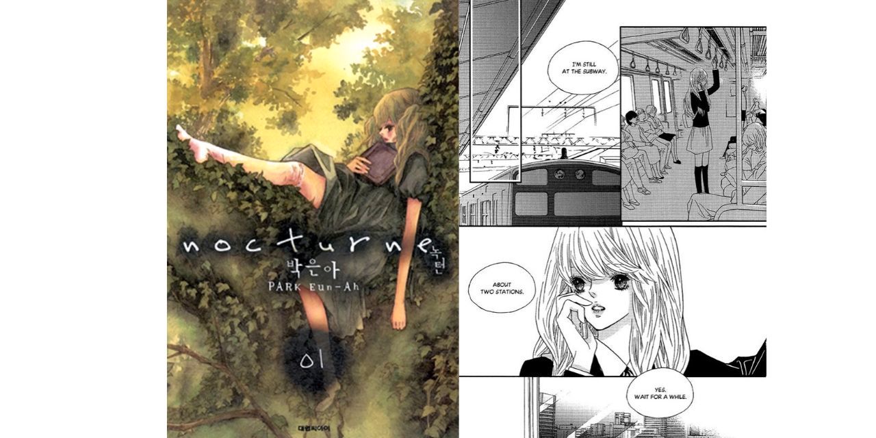 Nocturno fue escrito e ilustrado por Park Eun-Ah. Este manhwa de la vida está lleno de melancolía. A diferencia de la mayoría de los manhwa a todo color, este toma el estilo tradicional del manga japonés y es en blanco y negro.