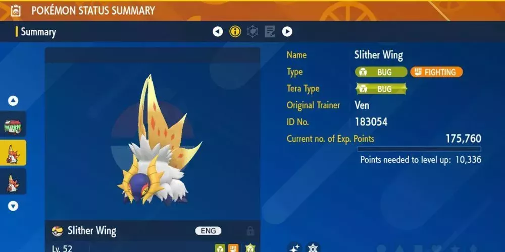 Slither Wing, uno de los Pokémon Paradox de Scarlet & Violet , es un Pokémon parecido a una polilla con alas de cuerpo peludo como una mariposa, lo que lo convierte en una tremenda proeza de diseño. Slither Wing ya es uno de los Pokémon más espectaculares del juego, pero su versión shiny lo hace aún mejor.