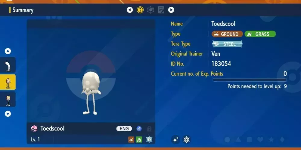 Toedscool, un nuevo Pokémon parecido a Tentacool, es un hongo sensible que se mueve rápidamente. Normalmente tiene el cuerpo rosa con manchas amarillas brillantes. Sin embargo, su variación Shiny cambia todo su cuerpo a un blanco de aspecto nítido.
