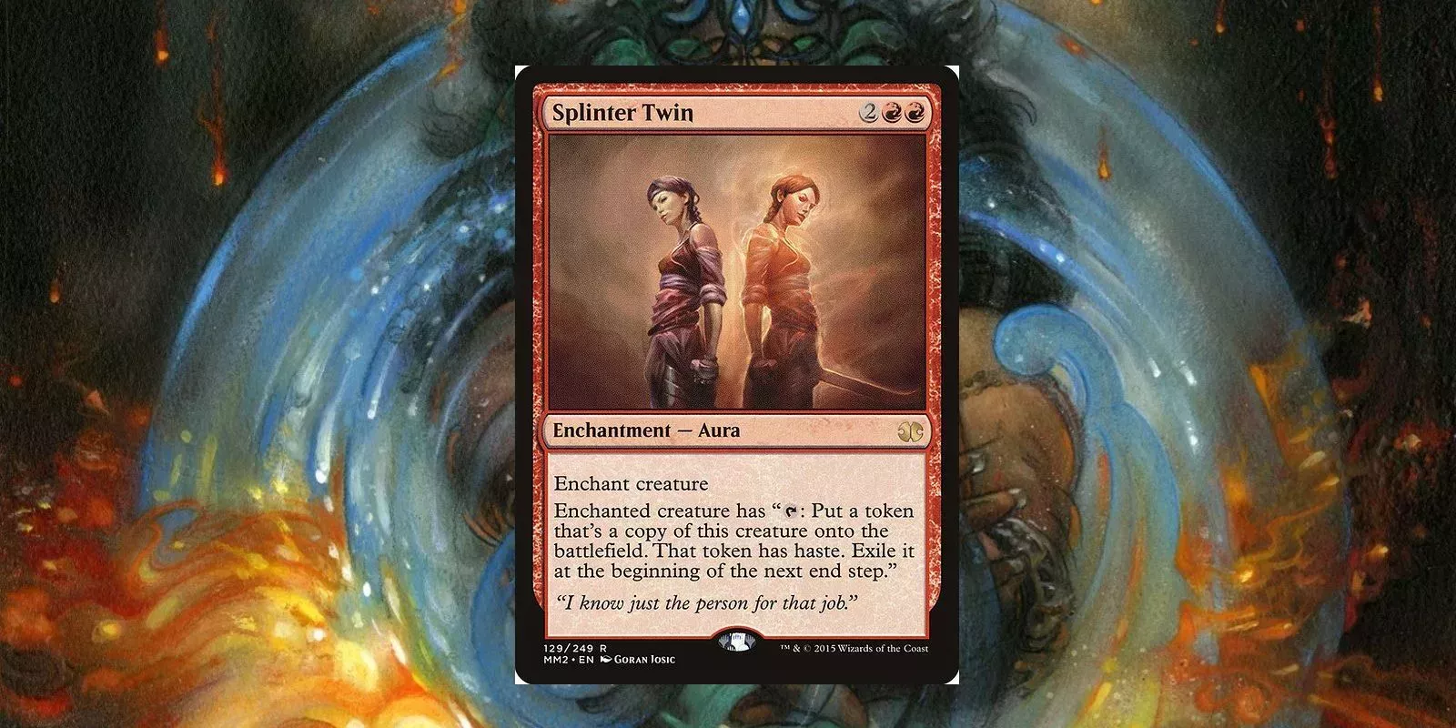 En el mazo azul/rojo adecuado, Splinter Twin permite ganar en el turno 4 o incluso en el 3 de vez en cuando. La inclusión de esta carta en el formato Modern también homogeneizó el meta con mazos azul/rojo.