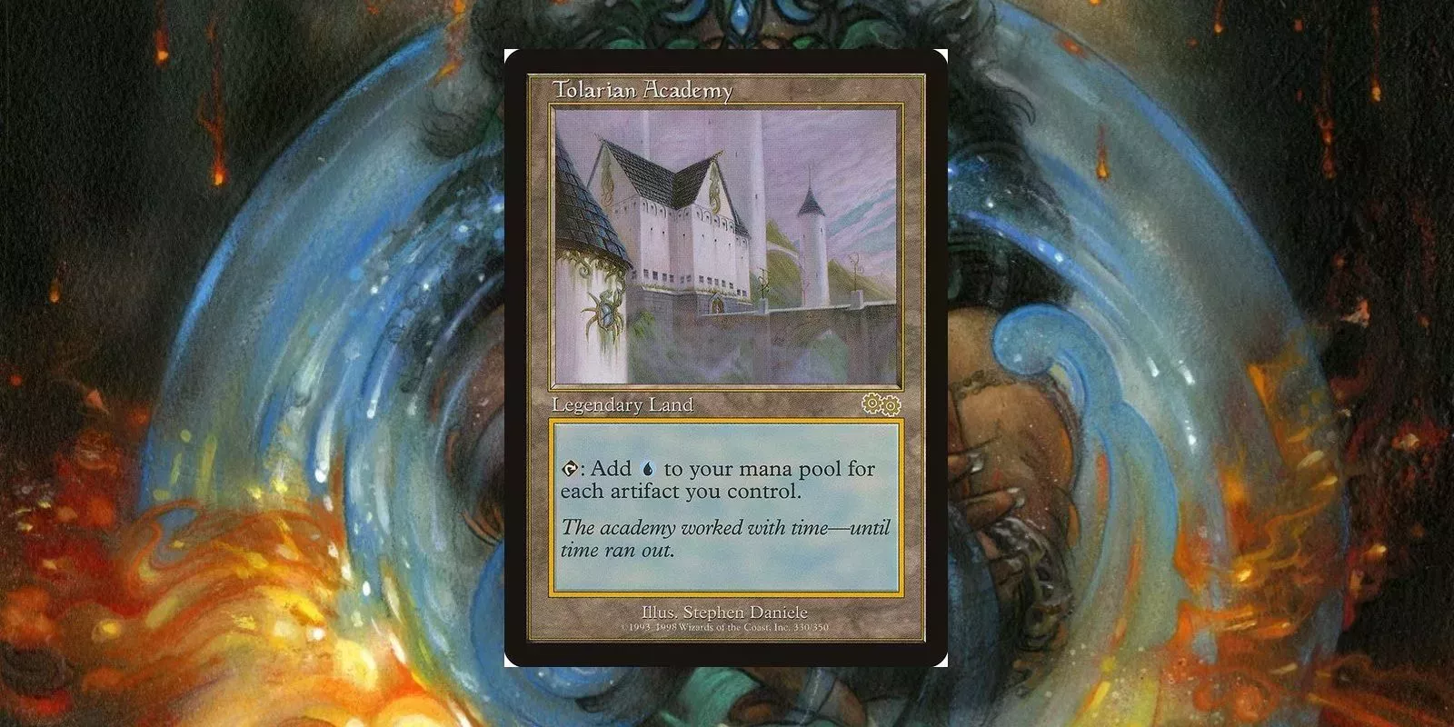La Academia tolariana puede obtener maná azul en función del número de artefactos que tenga el jugador, y eso es una rampa de maná explosivamente potente que puede obtener todo ese maná en cada turno. Aunque Academia tolariana se vea ligeramente debilitada por ser legendaria, sigue siendo demasiado potente para la mayorÃa de los formatos.