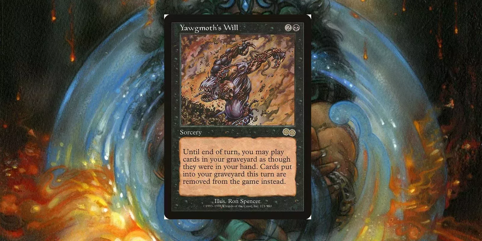 Voluntad de Yawgmoth es una forma bastante barata de volver a lanzar cartas del cementerio, y cualquier mazo que alimente su cementerio de forma adecuada probablemente ganará la partida con este efecto. Este efecto está relacionado con el ultrapoderoso Necropotencia, que también convierte puntos de vida en cartas muy necesarias.