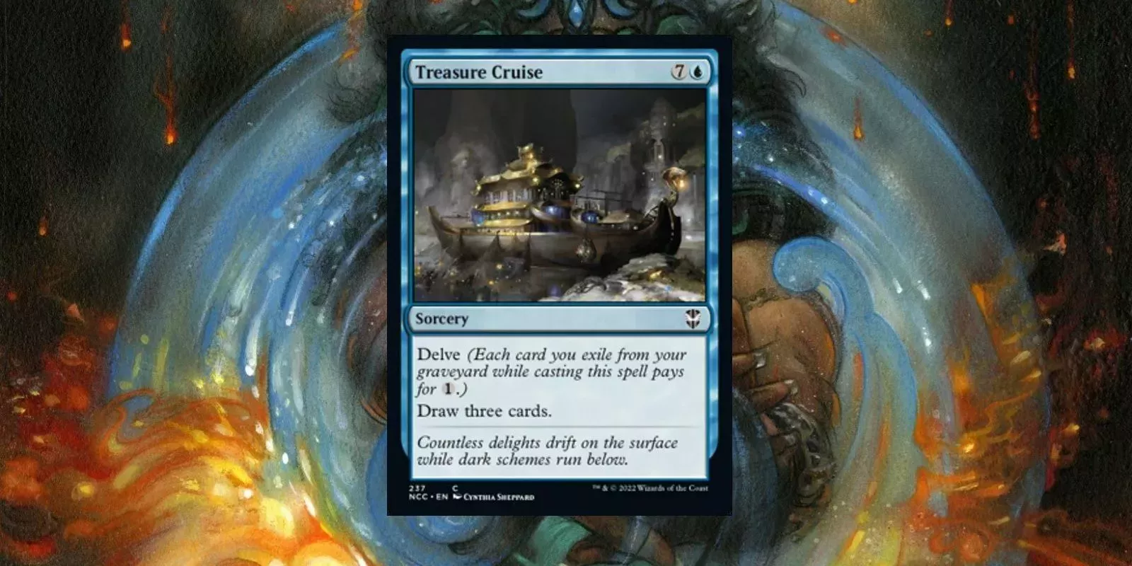 Crucero del tesoro, como mera carta común, puede usar la habilidad de desenterrar para recortar maná en su coste de lanzamiento, potencialmente hasta sólo U. Y no importa el maná pagado, el efecto es robar tres cartas, lo que puede llevar a situaciones ridÃculas. De ninguna manera Wizards permitirÃa que este nuevo Ancestral Recall corriera libre en Legacy y Modern por mucho tiempo.
