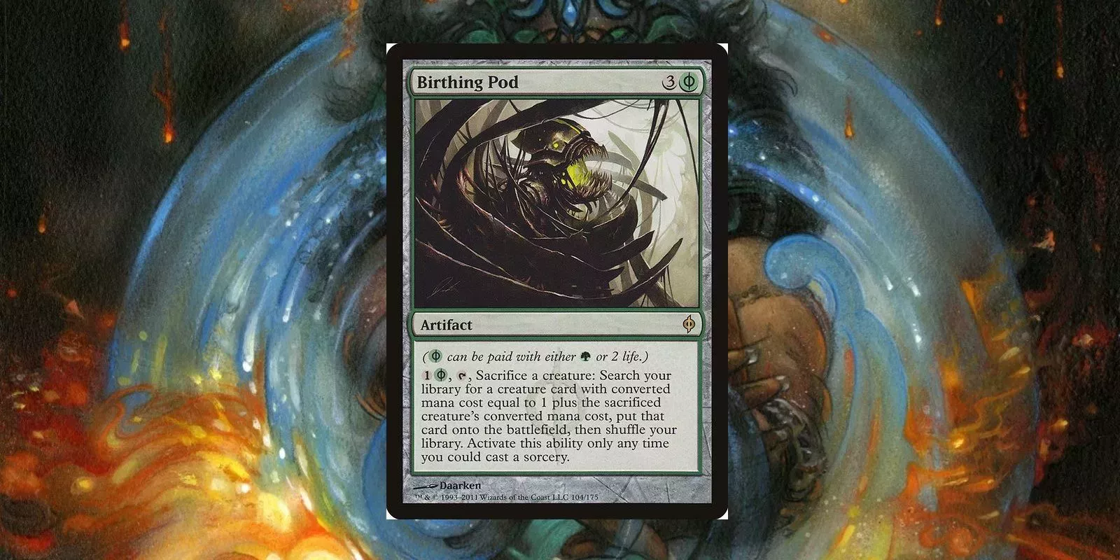El artefacto verde llamado Vaina naciente era un ejemplo de lo injusto que podÃa ser el Maná pirexiano, ya que esta carta podÃa lanzarse y activarse sin ni siquiera usar maná verde. Esto por sà solo ya es un problema, pero luego está el efecto real de Birthing Pod, que puede hacer que los mazos sean terriblemente consistentes en formatos como Modern.