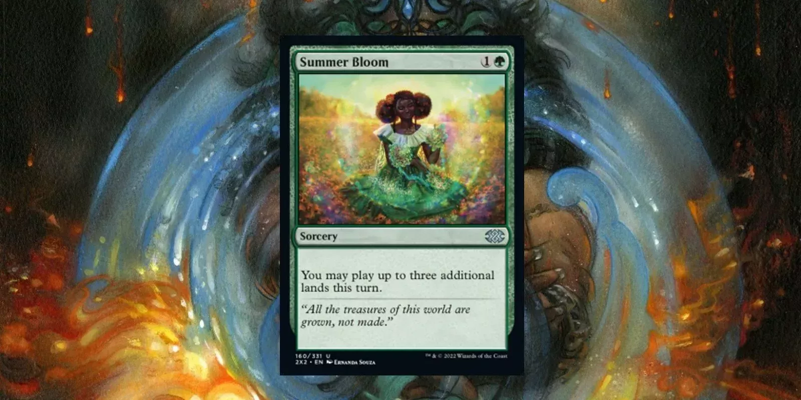 Floración estival es un hechizo verde bastante poderoso por sà mismo, especialmente en mazos con muchas tierras en formatos como Commander. Jugar tierras extra puede acelerar mucho un mazo, pero en el mazo Modern Primeval Titan/Amulet of Vigor, Flor de verano era francamente excesivo.