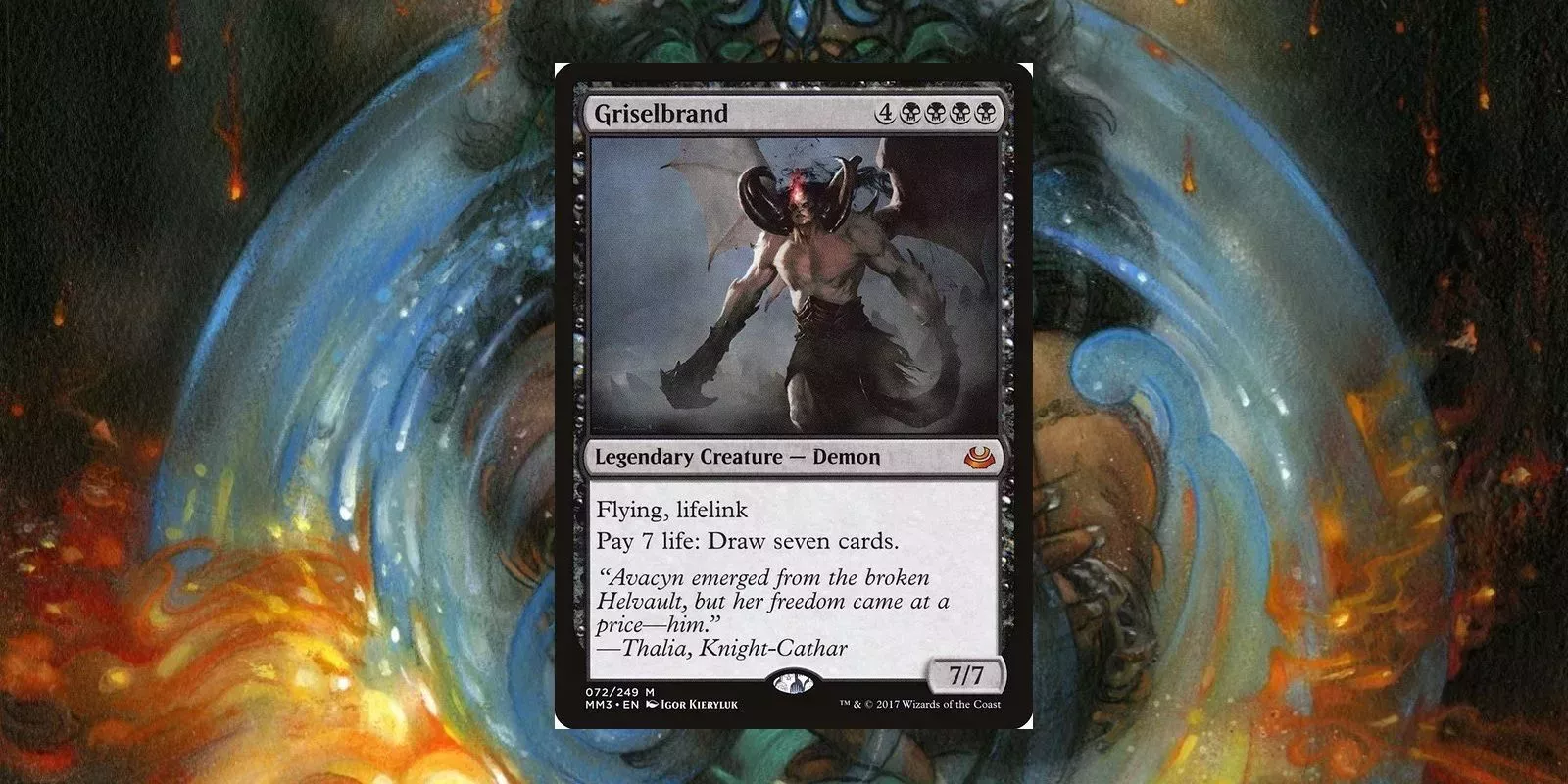 Griselbrand es una poderosa criatura negra que puede pagar 7 vidas para robar tantas cartas, y con un cuerpo de 7/7 de enlace vital, Griselbrand puede pagar fácilmente varias barajas con ese efecto. Esta criatura es un objetivo de reanimación popular en el formato Moderno, como las barajas de Grishoalbrand.