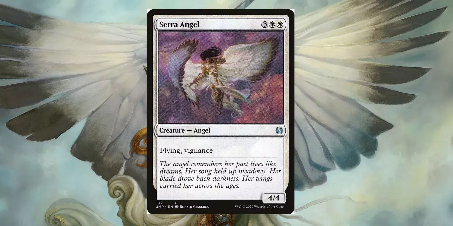 El Ángel de Serra, al igual que el Dragón de Shivan, fue un rematador icónico en la década de 1990 en Magic: The Gathering. En aquella época, el concepto mismo de ángeles guerreros era bastante nuevo, por lo que el hecho de que Serra Angel fuera un 4/4 volador lo hacía destacar aún más. De hecho, "Serra" debe su nombre a la idea de un borde dentado.