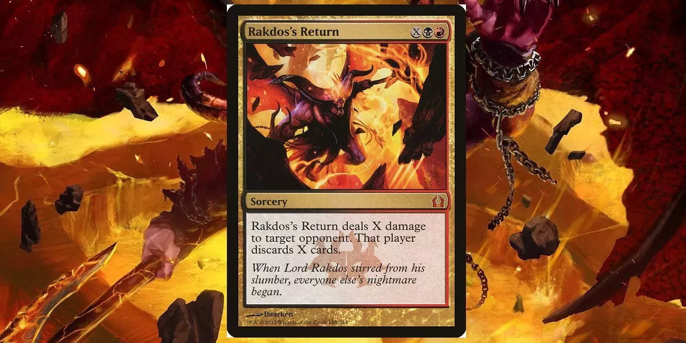 El Retorno de Rakdos podía prácticamente ganar la partida si el oponente descartaba toda su mano ante su efecto, pero este hechizo se juega mucho menos ahora. Es demasiado lento para formatos competitivos como Modern y Legacy, y hay efectos de descarte más adecuados para las partidas de Commander.