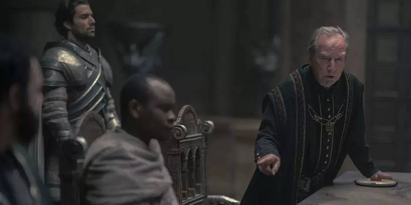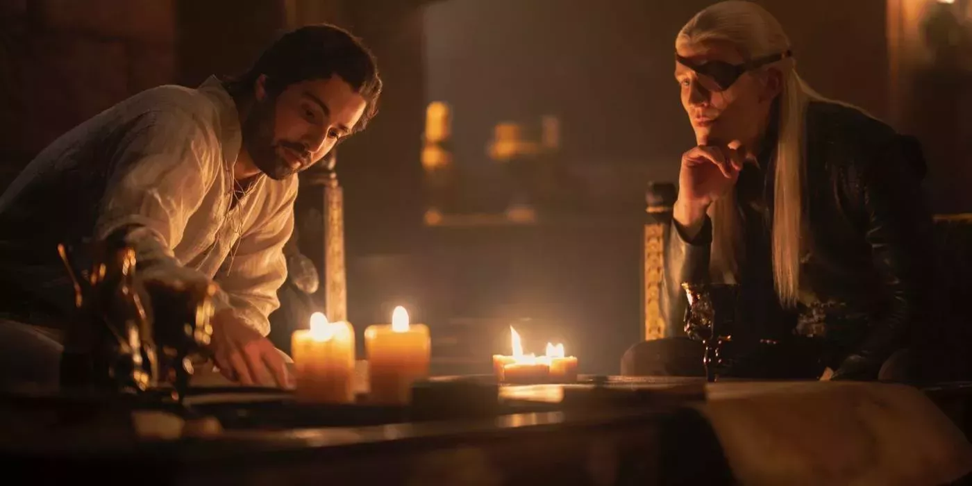 Cuando el público se reencuentra con los Hightower en la segunda temporada de la Casa del Dragón, sólo han pasado unos días desde la muerte del rey Viserys. Sin embargo, en ese breve espacio de tiempo, Criston Cole y la reina Alicent Hightower han empezado a acostarse en secreto. Aunque no está del todo implícito, uno se pregunta si él le hizo compañía mientras el rey se consumía.