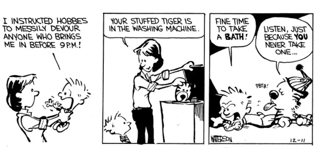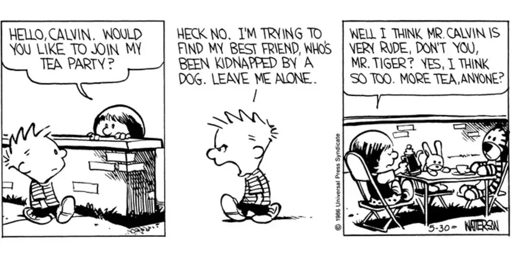 Calvin puede ser un amigo cuestionable a veces. Su amiga Susie acaba llorando muchas veces después de jugar con él. Hobbes, en cambio, es leal a toda prueba. Siempre que Calvin se siente solo o enfermo, Hobbes está a su lado. En una época de la vida en la que todo puede parecer muy cambiante y confuso, esa fiabilidad tiene un valor incalculable para un niño como Calvin.