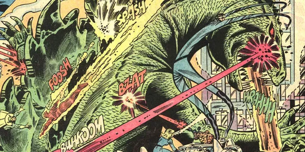Durante parte de los años 70, Marvel tuvo los derechos de Godzilla en los cómics. Godzilla se integró plenamente en el Universo Marvel, luchando contra muchos héroes e incluso frustrando una división de S.H.I.E.L.D. que se creó para detenerlo. Los Vengadores no pudieron vencer físicamente a Godzilla, por lo que tuvieron que recurrir a la bondad para lograr la paz.