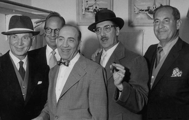 Vestido con su inconfundible chaqueta negra y a salvo tras su grueso mostacho (falso), sus gafas redondas y aquellas cejas hiperpobladas, y armado con su puro habano firmó junto a sus hermanos (tres en la primera época, cuatro cuando Zeppo se retiró) títulos tan legendarios como Los cuatro cocos (1929), Sopa de ganso (1933), Una noche en la ópera (1935), El hotel de los líos (1938), Los Hermanos Marx en el Oeste (1940) o Una noche en Casablanca (1946).