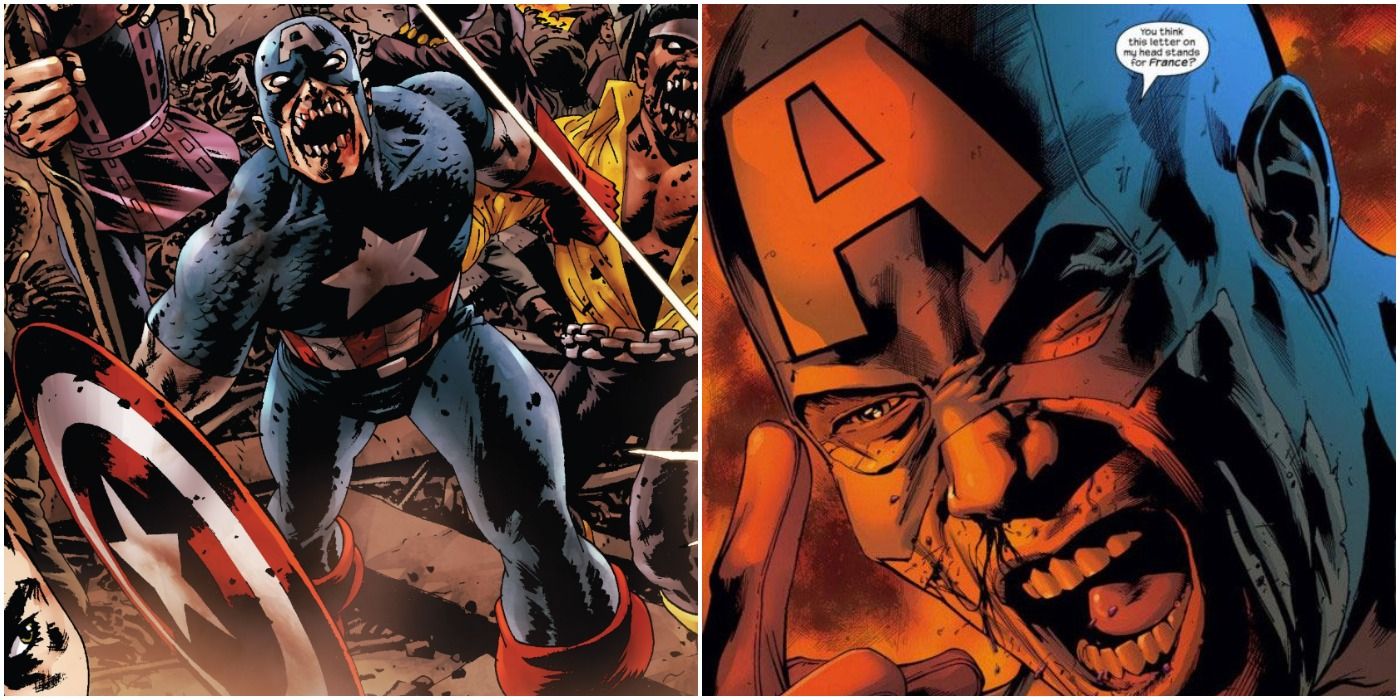 Como todos los héroes de los cómics modernos, el Capitán América tiene innumerables seres del multiverso. Algunos ejemplos son su yo no muerto en Marvel Zombiesy su versión de Ultimates con una fusión corta.