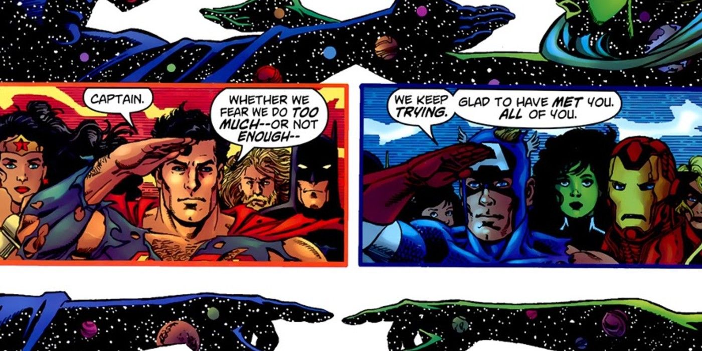 El Capitán América es una fuerza del bien tan patriótica que durante los crossovers de DC/Marvel se ganó el respeto de Superman, Batman y otros (véase: JLA/Avengers).
