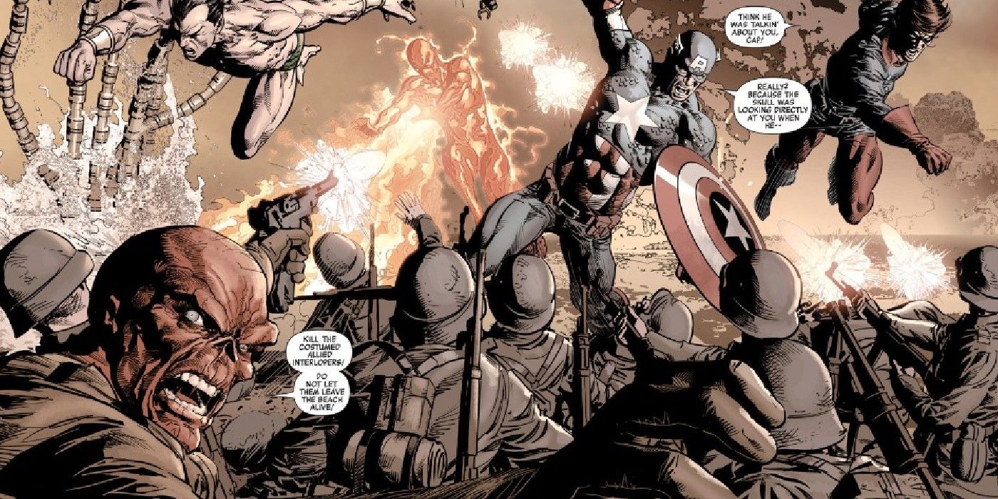 Originalmente, el Capitán América luchaba contra nazis y superhumanos en tiempos de guerra. En décadas posteriores, esto se amplió tanto en escala como en política, enfrentándose a encarnaciones del nazismo (Cráneo Rojo, Barón Zemo, etc.) y a los peores impulsos de América (Crossbones, Nuke, etc.).