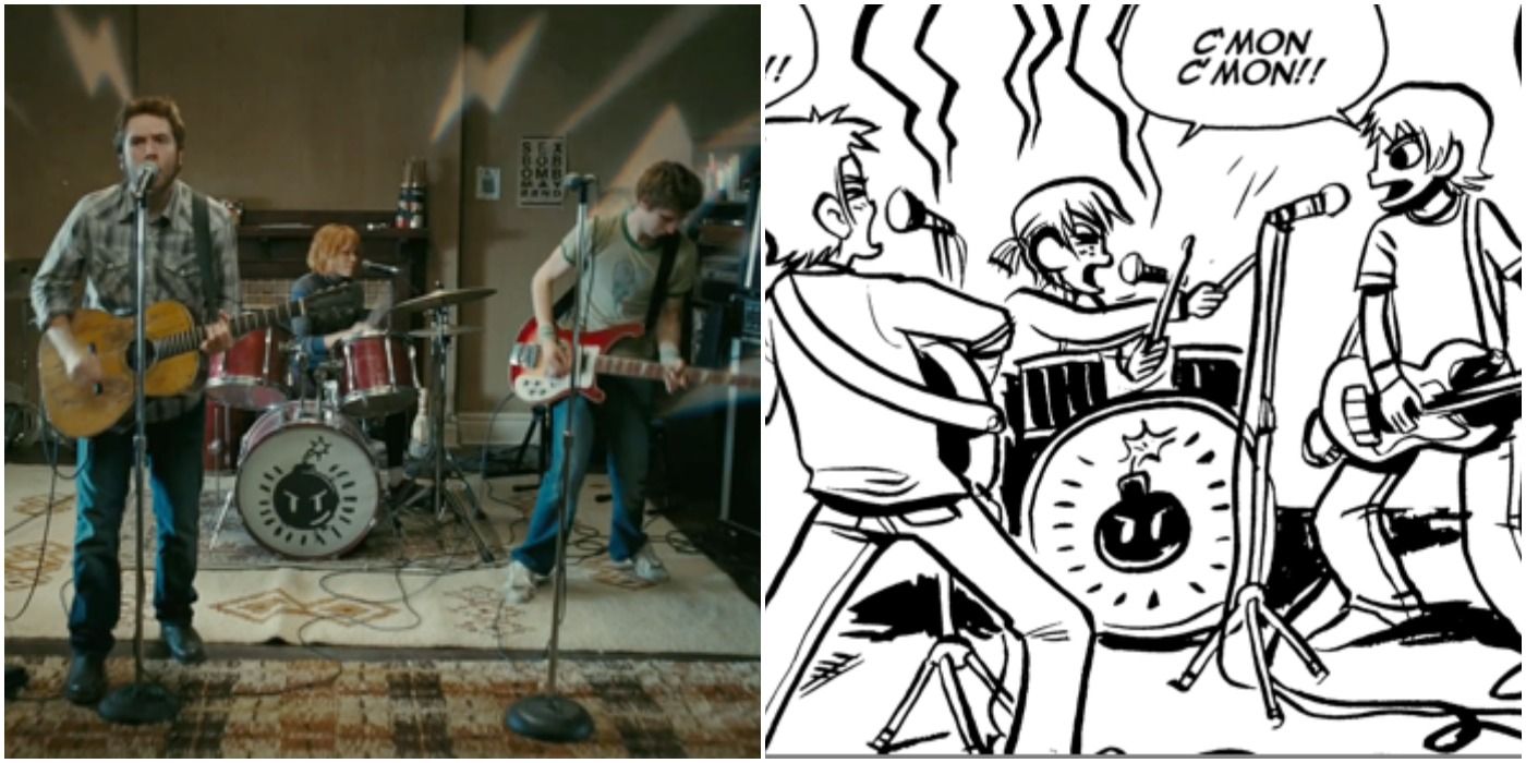 Tanto el cómic como la película comienzan como un asunto de "trozo de vida", que se interrumpe durante la Batalla de las Bandas cuando Matthew Patel se estrella contra el techo y desafía a Scott a una pelea. La versión de la película es directamente de la novela gráfica: el elemento musical, las chicas demonio hipster, e incluso muchas de las letras de la canción de Matthew.