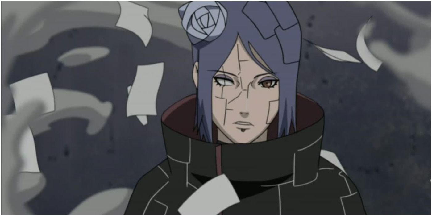 Konan no sólo fue uno de los últimos miembros de Akatsuki en morir, sino que también fue el único miembro femenino del grupo. Konan posee un inmenso talento con el origami, y lo incorporó a su lucha creando la Danza del Shikigami, que le permite transformar todo su cuerpo (incluyendo su ropa) en hojas de papel.