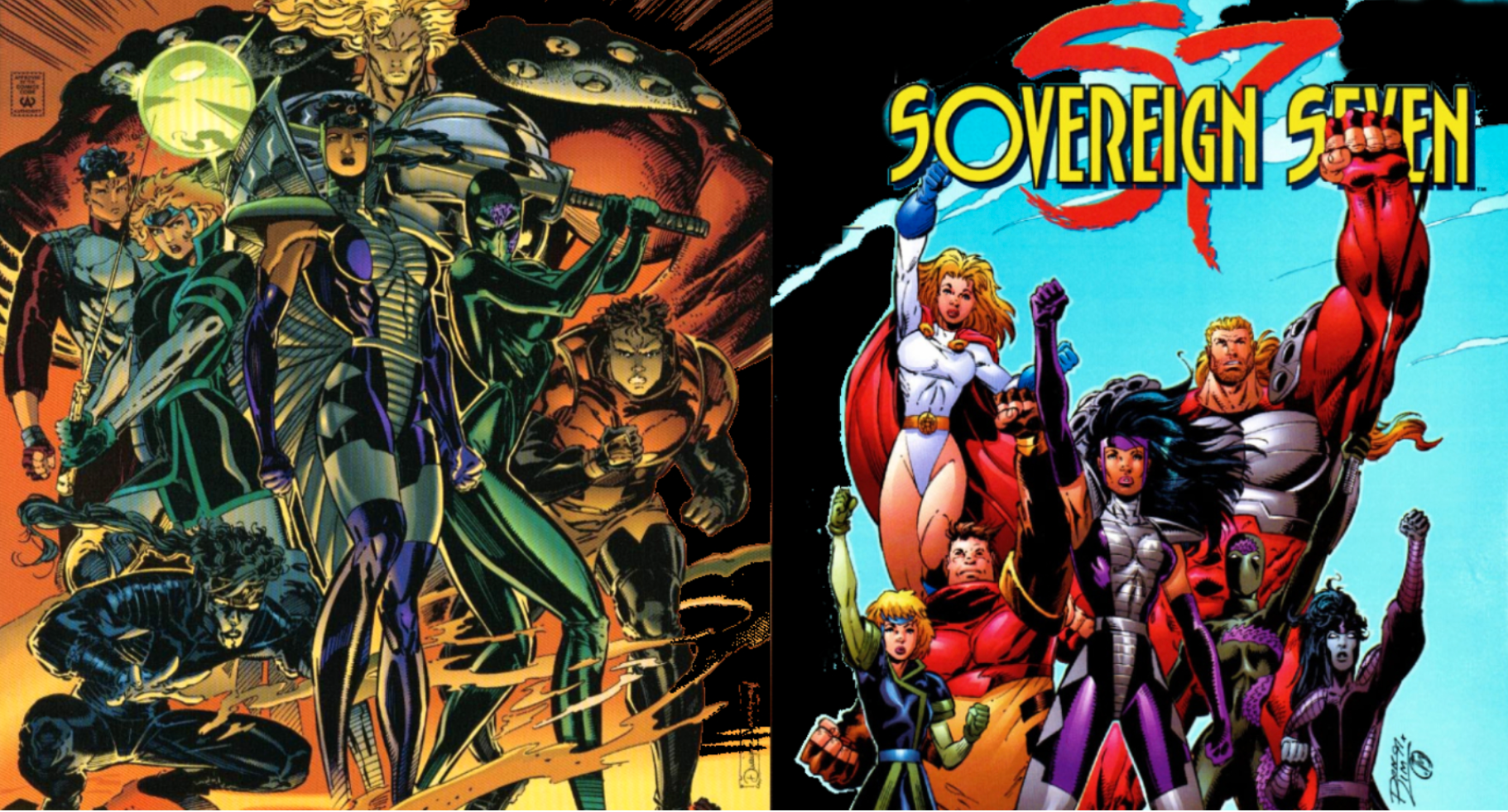 En abril de 1995, el escritor Chris Claremont regresó a su primera serie de cómics regular tras dejar los X-Men de Marvel, creando Los Siete Soberanos con el artista Dwayne Turner. La serie, que duró 36 números, fue la primera serie de personajes de propiedad de los creadores que se ambientó en el Universo DC. El grupo original estaba formado por Cascade, Finale, Rampart, Reflex, Indigo, Network y Cruiser; y posteriormente Power Girl.