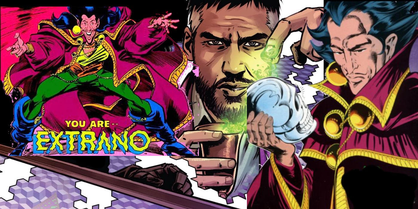 Extrañoes un mago del DCU creado por Steve Englehart y Joe Staton para el eventoMillenium de finales de los 80 y fue uno de los Nuevos Guardianes. Aunque nunca se dijo abiertamente en la página del cómic, Extraño es ampliamente reconocido como el primer superhéroe de DC abiertamente gay, lo que lo convierte en un personaje controvertido, tanto con los lectores como con la editorial.