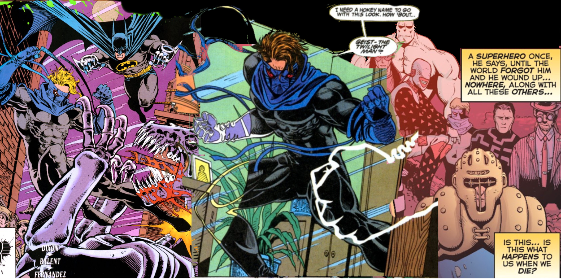Por cada Hitman o Argus, hay más que suficientes personajes que deberían permanecer perdidos en el limbo. Geist, creado por Chuck Dixon y Jim Balent durante el evento Bloodlines, es un excelente ejemplo del tipo de personajes olvidados. Después de aparecer en el Detective Comics Annual #6, Dwayne Geyer, el alter ego de Geist se retira, pero regresa durante Crisis Infinita sólo para ser dinamitado y asesinado por Superboy-Prime.