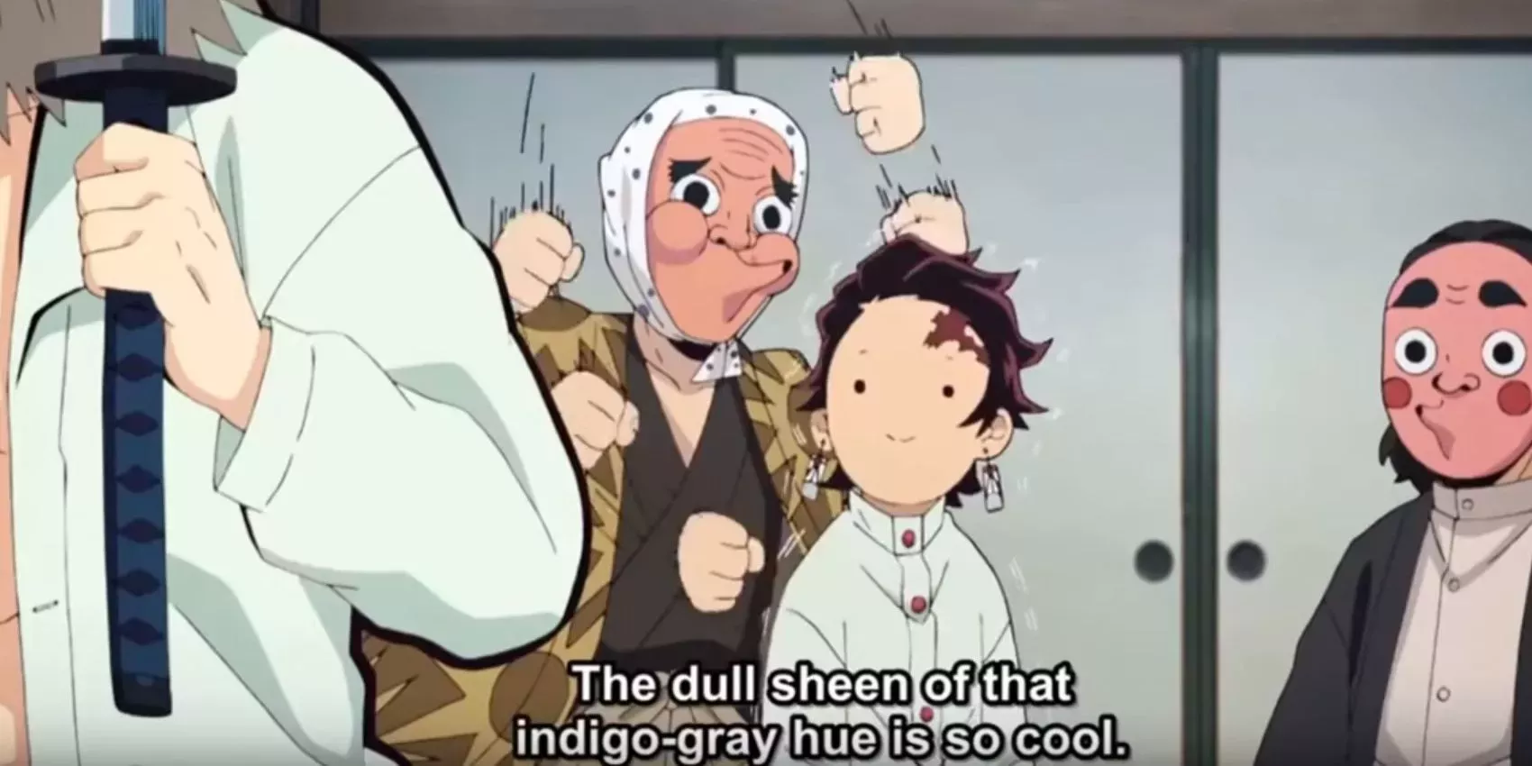 Al principio de la serie, Tanjiro completó su entrenamiento para convertirse en un verdadero asesino de demonios, y eligió el mineral que podría convertirse en su espada Nichirin. Se forjó fuera de la pantalla, y entonces un tipo excéntrico llamado Hotaru llegó a la casa de Saionji y Tanjiro para entregarla.
