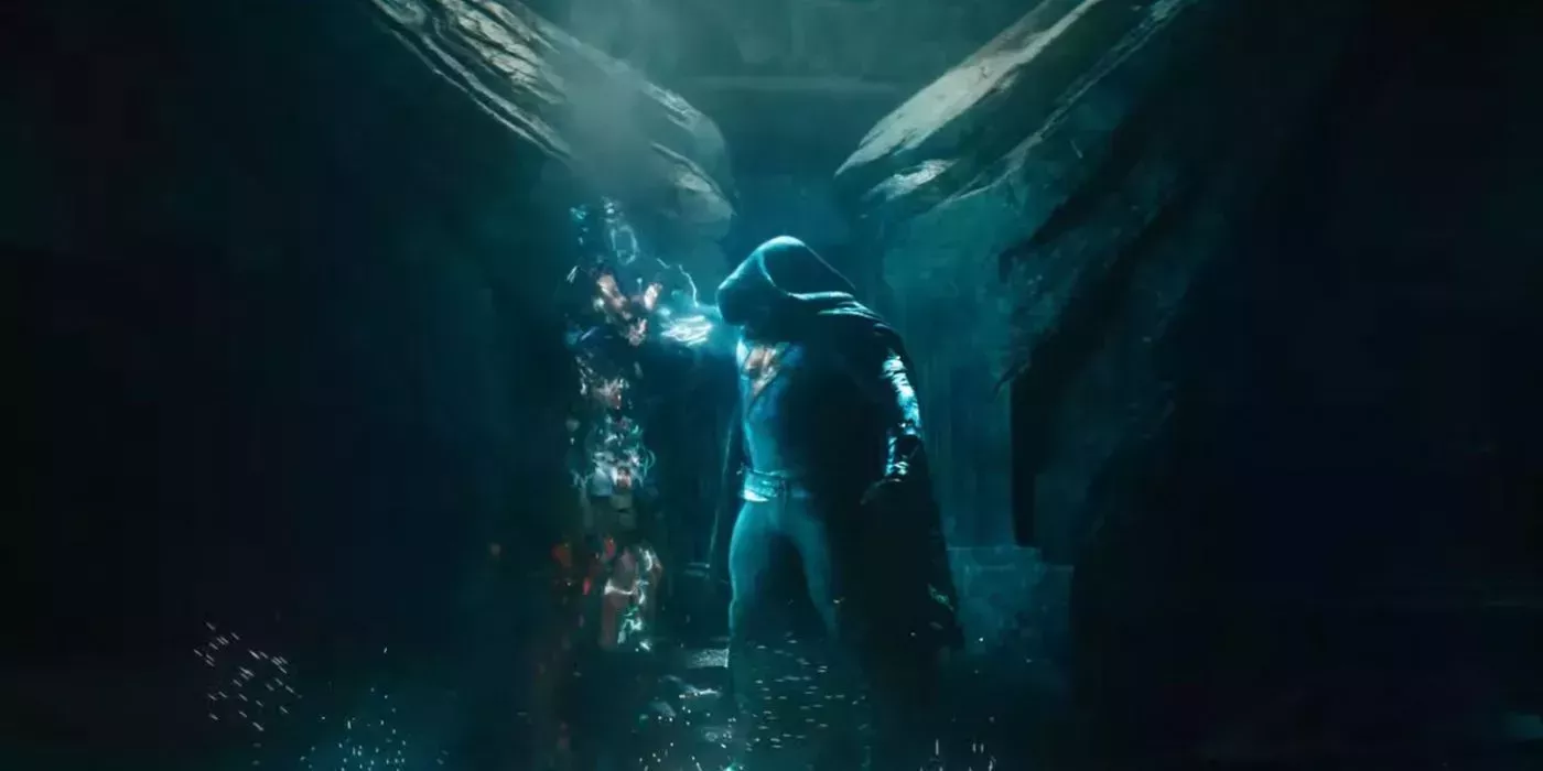 Más adelante en el tráiler, Black Adam sigue llevando la capucha cuando coge el cohete en el desierto. Este momento insinúa la línea de tiempo de los acontecimientos indicando que lo que sea que esté ocurriendo en el desierto cuando Adam llega podría ser el resultado de su liberación de su encarcelamiento de 5.000 años.