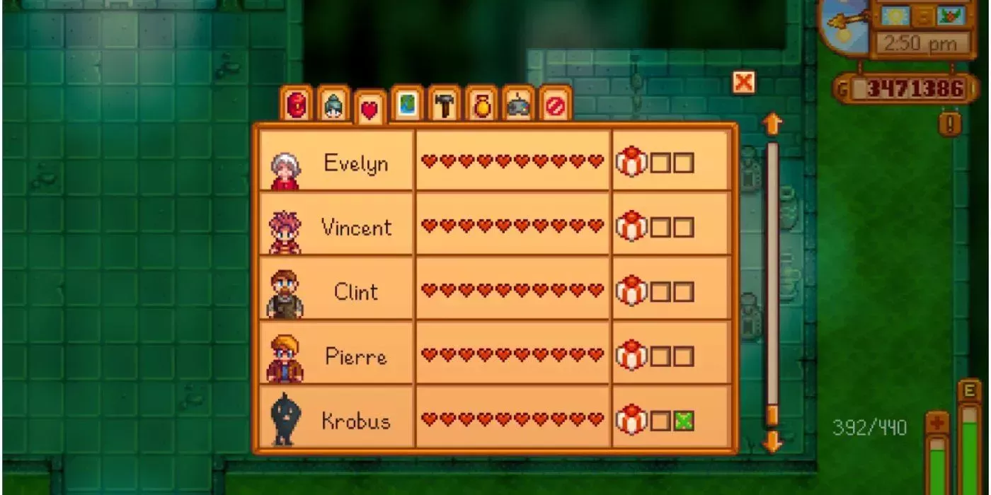 Al dar regalos a personajes como Robin y Clint, los jugadores pueden profundizar en sus personajes y descubrir sus pasados y dificultades personales. El resultado es una experiencia más profunda en el elemento social de Stardew Valley, que se siente más realista que en Animal Crossing.