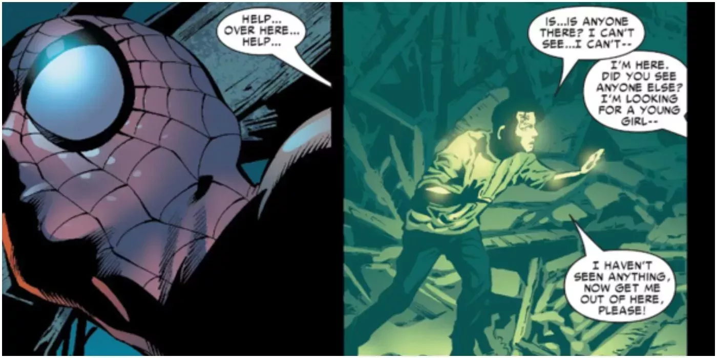 7/8 Spiderman utilizó la visión nocturna para salvar a la gente de un edificio que se derrumbaba