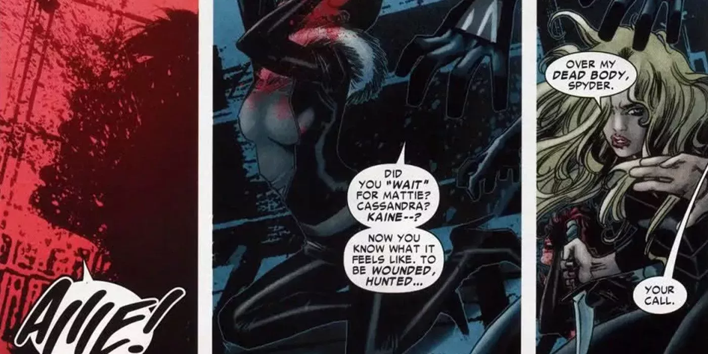 Uno de los atributos más geniales y brutales de Spider-Man, que rara vez utiliza, fue descubierto por su clon, Kaine. Kaine se dio cuenta de que la capacidad de Spider-Man de usar el adhesivo de sus zarcillos que le permitía pegarse a las paredes también puede arrancar la carne de alguien.