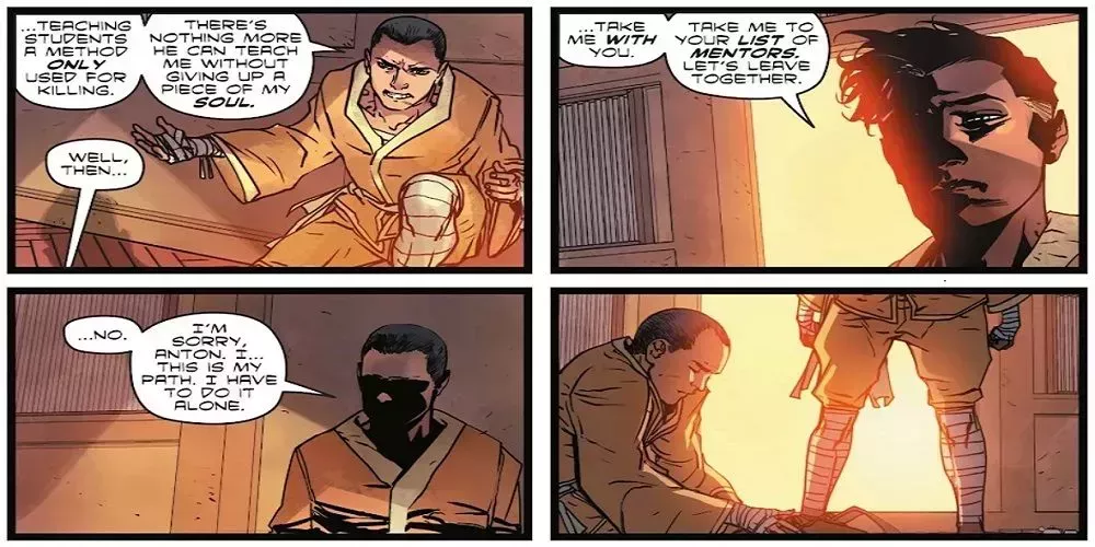El destino del joven Batman parece sombrÃo hasta que Anton interviene para ayudarle a incapacitar a los atacantes. A partir de ese momento, Bruce y Anton viajan juntos, hasta el número 6, cuando Anton elige seguir un camino más oscuro y sanguinario. Con el corazón roto y traicionado, Bruce continúa su entrenamiento mundial en solitario.