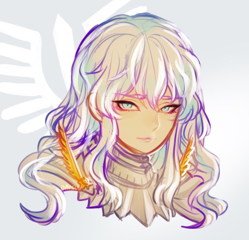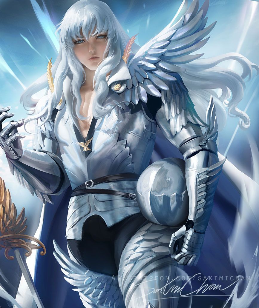 Hubo un tiempo en el que Griffith no estaba consumido por sus propios objetivos, donde podía sentir cosas más allá de sus ideales. Esta pieza de Michaelcty invoca algunos de esos sentimientos, mostrándolo como un caballero de aspecto más regio, uno que lucharía con un sentido de honor e integridad. Ninguna de esas son palabras que invocarías para describir el hombre que es ahora. Como muchas fotos de Griffith, la forma en que su cabello fluye es impresionante, dándole una apariencia casi de almohada.