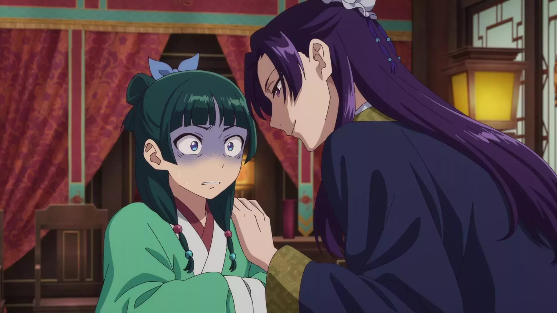 Una de las partes más divertidas de la serie es la relación entre Jinshi y Maomao. A Maomao no le afecta su buena apariencia y Jinshi parece enamorado de la actitud increíblemente dura de Maomao. Quizá sea un poco masoquista. Algunas de las partes más divertidas han sido cuando él se enamora de ella más y más, lenta y petulantemente, mientras Maomao parece no tener ni idea de lo que está pasando.