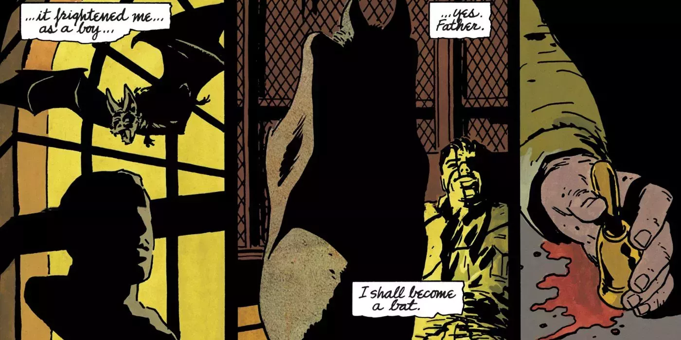 Bruce tuvo la idea del traje de murciélago cuando un murciélago entró volando en su habitación. De niño, Bruce tenía miedo a los murciélagos, lo que hizo que el Bruce adulto se diera cuenta de que podría asustar a los criminales como una criatura parecida a un murciélago. En otra dosis de ironía, Batman acabó teniendo que luchar contra una criatura murciélago llamada Hombre Murciélago, cerrando así el círculo de su pasado miedo a los murciélagos.