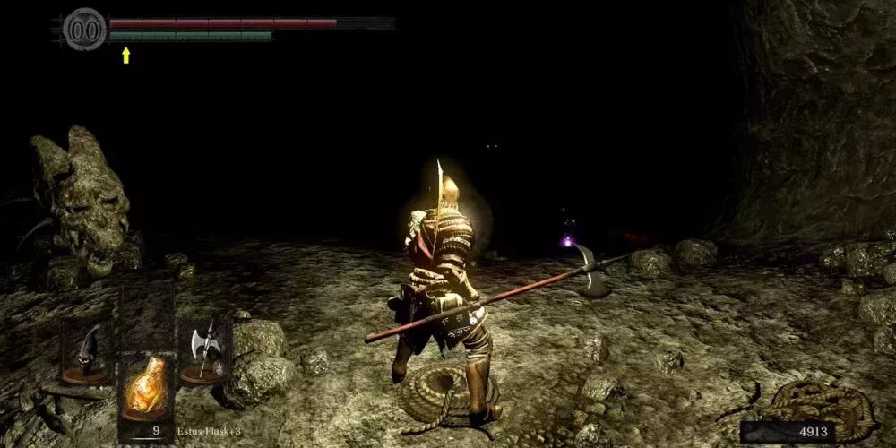 Dark Souls en su conjunto es lúgubre. Sólo algunas secciones, como Anor Londo, están bien iluminadas. Todo el juego gira en torno a la oscuridad que se avecina, así que es apropiado. Un área lleva las cosas más allá de lo que a la mayoría de los jugadores les gusta. Al final del juego, el jugador va a la Tumba de los Gigantes. El único truco de la zona es que no tiene ninguna fuente de luz.
