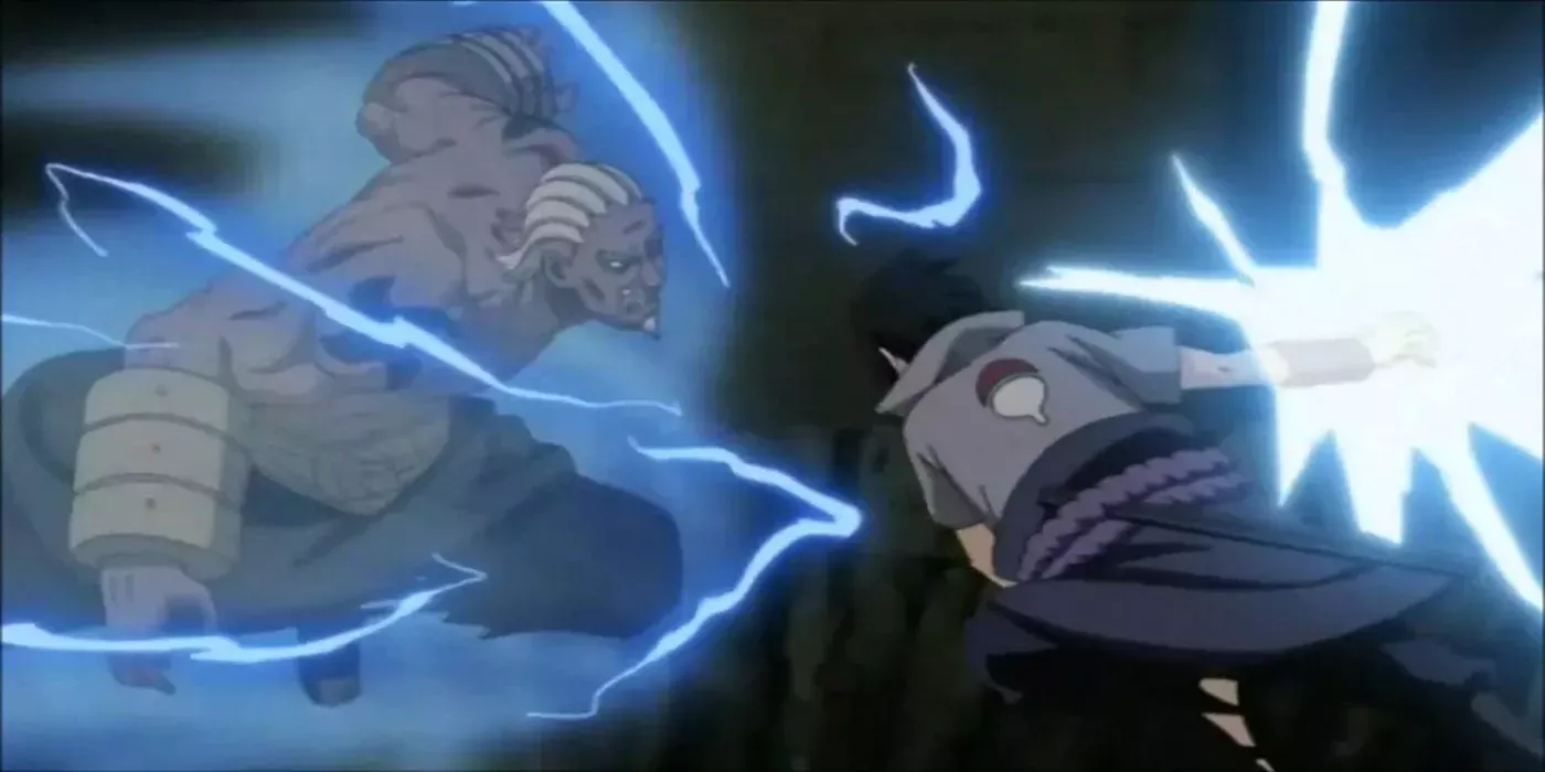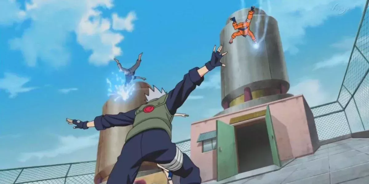 Sasuke usó su Chidori sobre Naruto, que recientemente había descubierto el Rasengan, y afortunadamente Kakashi evitó que ninguno de los dos se golpeara. Pero la diferencia de poder se hizo evidente cuando Sasuke echó un vistazo a los dos tanques de agua que sus ataques habían golpeado. Mientras que el Rasengan de Naruto no había hecho mucho daño a la parte delantera de su tanque de agua, demolió la parte trasera.