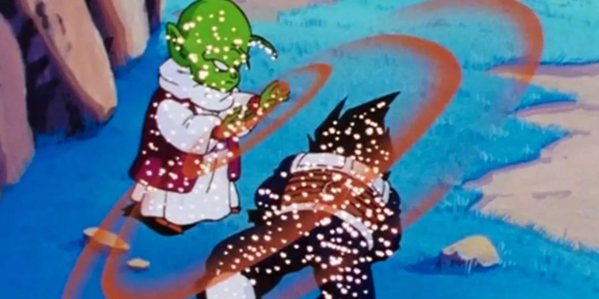 Vegeta realiza una práctica volátil para aumentar su fuerza Saiyan, que implica el uso de la curación de Dende. Frieza se da cuenta de los poderes de Dende y acaba con el joven namekiano. Dende perece, y Vegeta tampoco puede derrotar a Frieza con su fuerza restaurada.