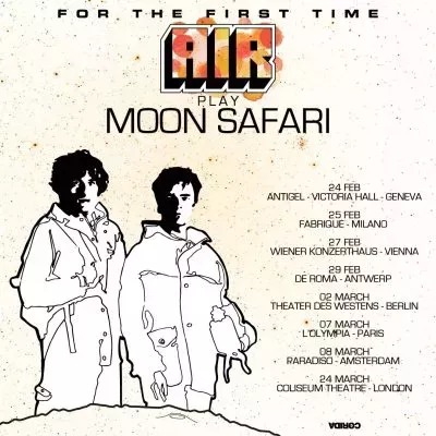 Tras celebrar su 25 aniversario a principios de este año, Air realizará una gira de su experiencia "One Night Only" para "Moon Safari" en febrero y marzo, que incluirá un espectáculo en el Coliseum de Londres.