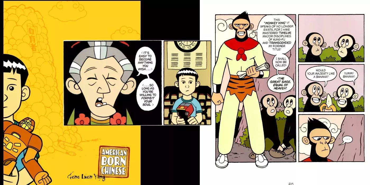 La historia yuxtaponía la vida de Jin Wang a otras dos historias, las de una antigua leyenda del Rey Mono y un personaje diseñado como un estereotipo chino. American Born Chinese demostró ser un cómic tan rompedor que recientemente obtuvo una adaptación televisiva de acción real.
