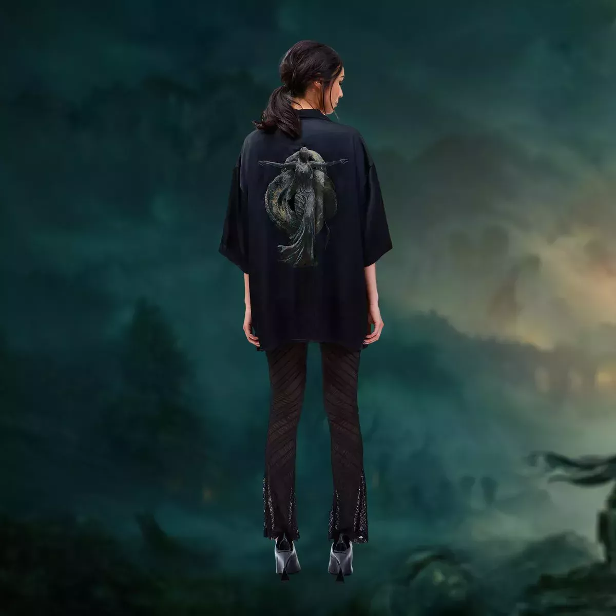 Aunque su precio no es apto para todo el mundo, no se puede negar lo bien que sientan, sobre todo las camisas de satén con la estatua de la reina Marika y la chaqueta bomber The Lands Between, con un estampado integral del mapa del mundo.
