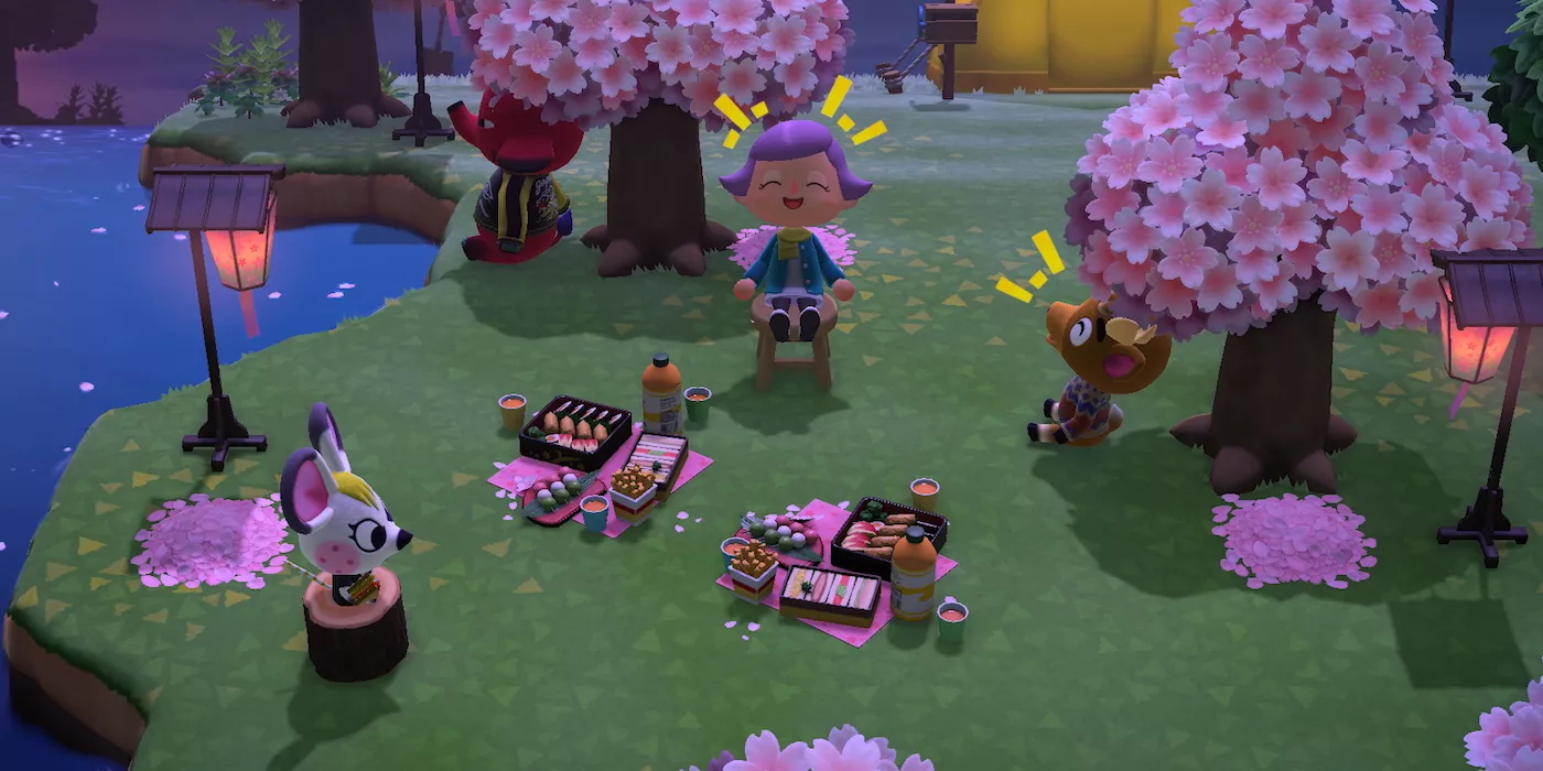 Bichos primaverales, peces y criaturas marinas comienzan a llegar a Animal Crossing: Nuevos Horizontes el 1 de marzo en el hemisferio norte y el 1 de septiembre en el hemisferio sur. El 1 de abril o el 1 de octubre, respectivamente, algunos árboles de madera dura en las islas de los jugadores florecerán con flores de cerezo y los pétalos de las flores de cerezo volarán por el aire. Esto ocurre durante sólo 10 dÃas, lo que da a los jugadores una ventana muy pequeña para recolectar pétalos y flores de cerezo, que se encuentran principalmente en los regalos de los globos.