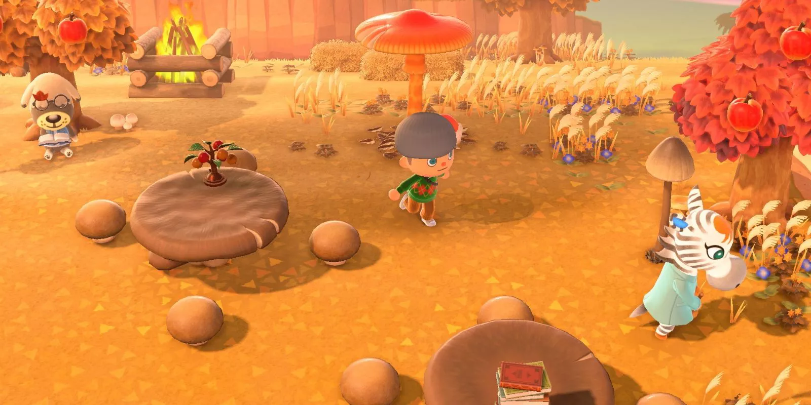 Las hojas y el pasto comienzan a cambiar de color para el otoño en septiembre para los jugadores del hemisferio norte y en marzo para los del hemisferio sur. En Animal Crossing: Nuevos Horizontes, el otoño marca la llegada de varias recetas de bricolaje de temporada y eventos especiales para Halloween y el DÃa de Acción de Gracias americano.