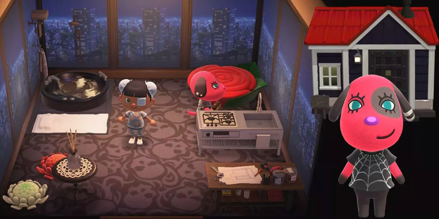 Aunque Cherry no sea la aldeana más espeluznante de Animal Crossing: New Horizons, su estética es muy Halloween. El pelaje de esta perra aldeana es rosa oscuro, como una cereza. Sus aires son muy gótico-chic, con una mancha oscura sobre el ojo izquierdo, dos piercings en la oreja izquierda y una camiseta de tela de araña.