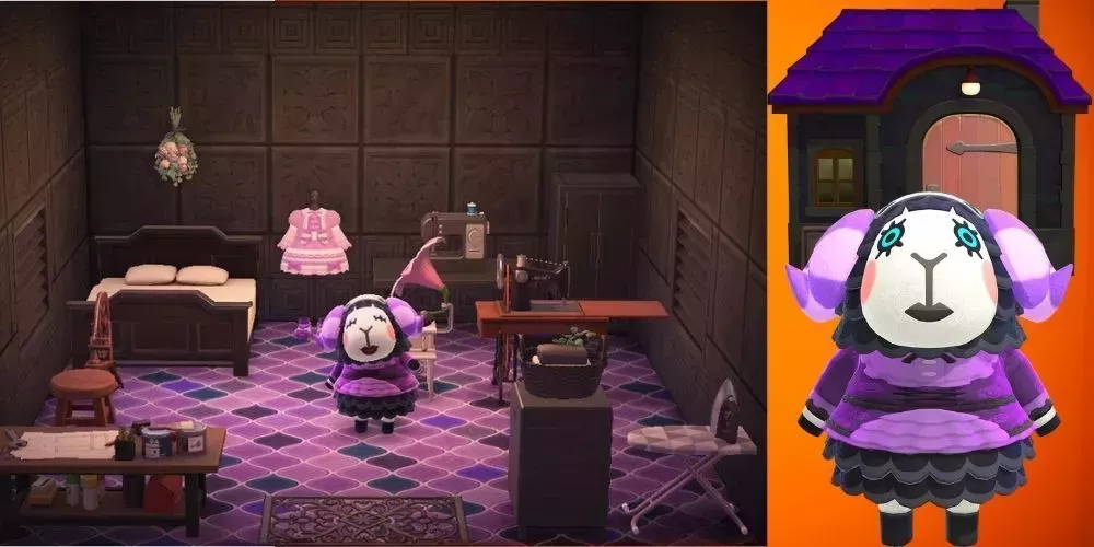 Muffy, una oveja aldeana con un tipo de personalidad fraternal, tiene el atuendo perfecto para una isla con temática de Halloween. Muffy luce un gótico vestido morado y negro, cuernos morados y pintalabios negro sobre un rostro casi blanco. Con sus ojos azul eléctrico, Muffy parece una vampiresa, y los jugadores la adoran por ello.
