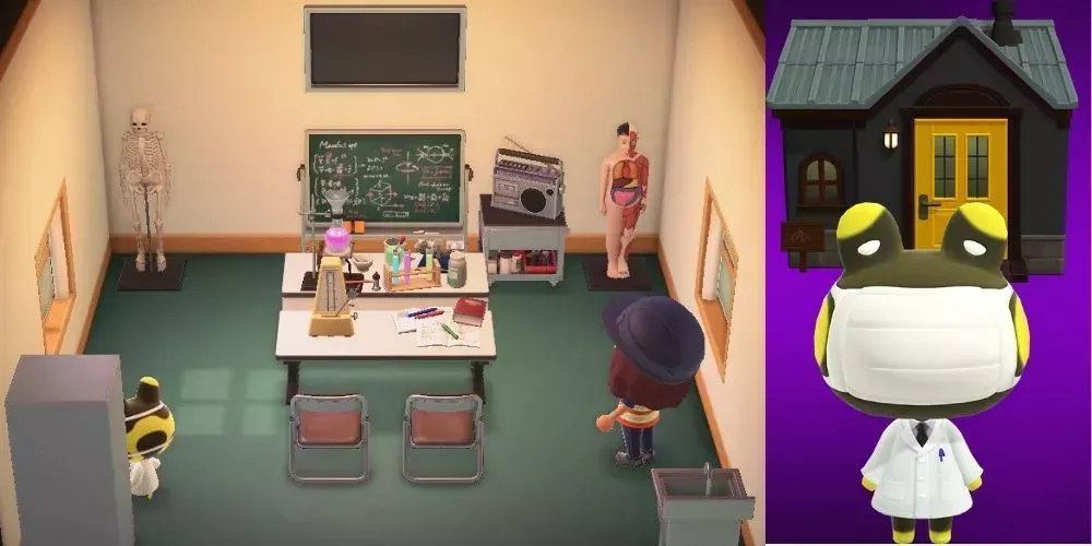 Raddle tiene una casa de color verde oscuro, y su interior parece un aula de Biología, lo que hace aún más espeluznante a este aldeano. Los jugadores pueden imaginar que la casa de Raddle es su nefasto laboratorio, donde realiza todo tipo de experimentos grotescos en su tiempo libre. El esqueleto de la esquina es ciertamente escalofriante.