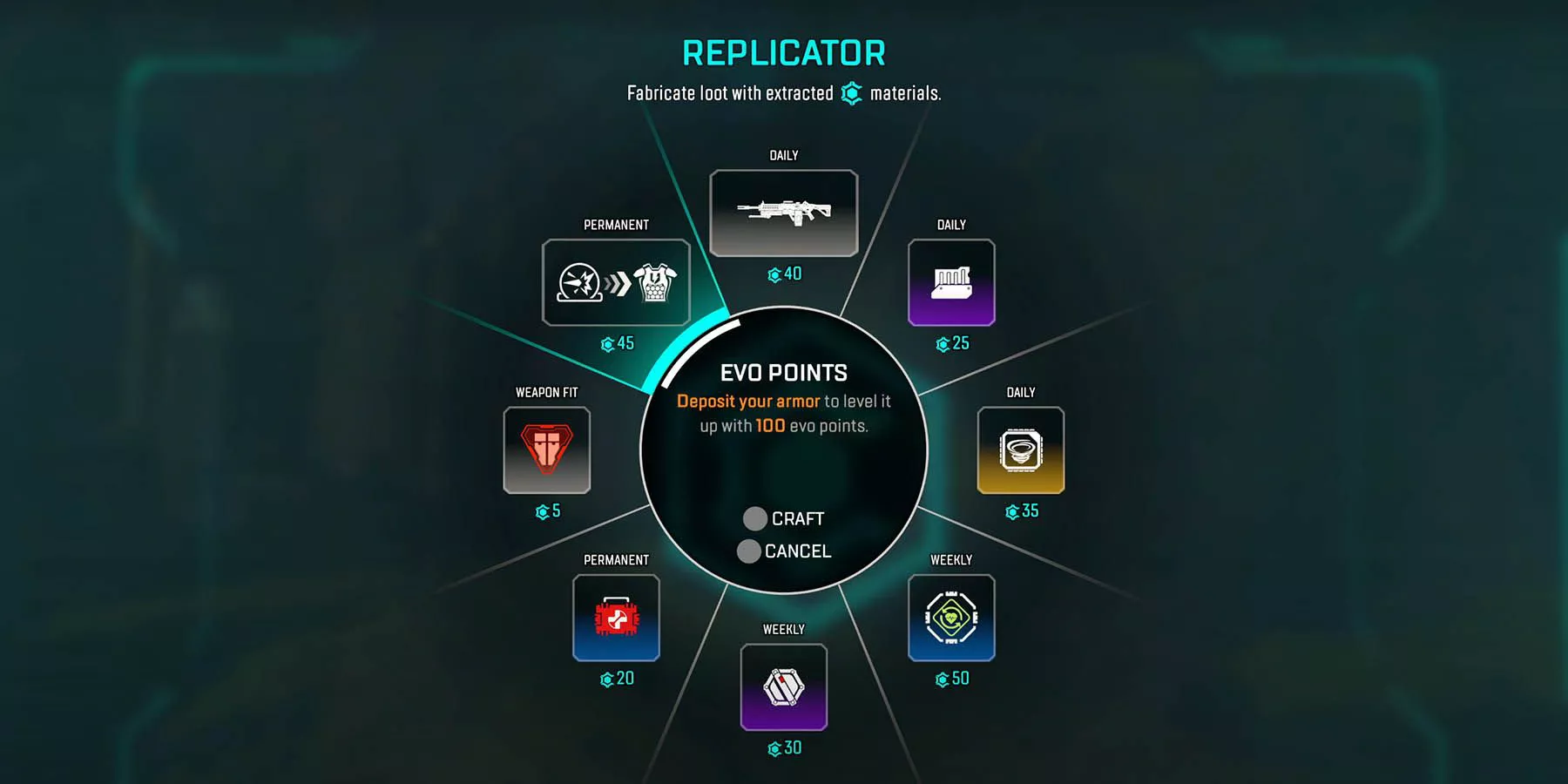 La tienda de artesanÃas tiene ocho opciones de actualización de equipo que parecen cambiar diaria y semanalmente, mientras que algunas son permanentes. Una mejora permanente que aparece en el remolque es un escudo EVO mejorado. A través de la tienda en el remolque, podemos ver que el Turbocargador ha regresado, muy probablemente como un accesorio para el Devotion o Havoc, con Devotion ahora disponible en el piso. Una de las ocho ranuras está etiquetada como "Weapon Fit" y en el remolque tiene munición de escopeta, por lo que esa ranura puede cambiar dependiendo de las armas que los jugadores tengan en sus manos cuando accedan a la tienda de artesanÃa.