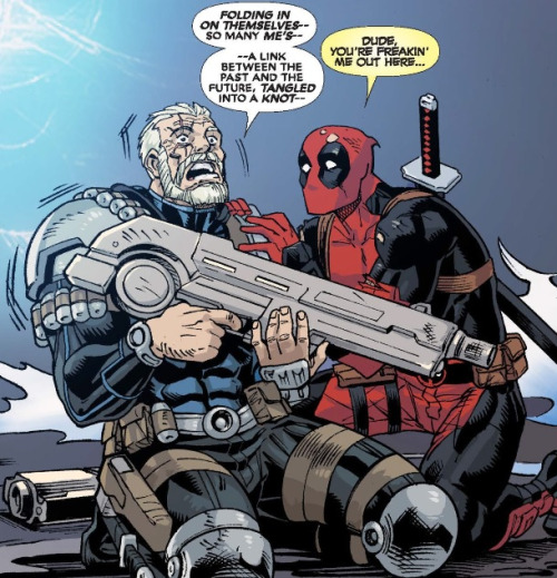 “Hay mucho de la historia de Cable que me gusta porque está muy entrelazado con el mundo de los X-Men. Fue puesto junto a Deadpool en lugar de abandonarlo en un cómic que no se vendía cuando Deadpool también estaba en un cómic que no se venía, así que los juntaron. Esa es la razón por la que pusimos a Coloso; es un tipo recto. Creo que Deadpool necesita alguien recto. Cable es el arquetipo definitivo; silencioso, fuerte y un guerrero cínico, lo contrario de lo que es Deadpool.”