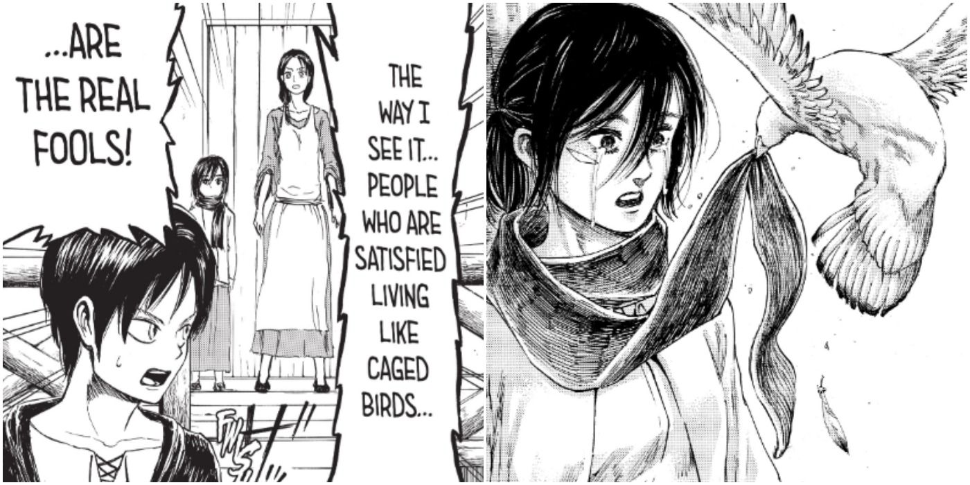 Eren siempre quiso la libertad. Desde que nació, esperaba escapar de Paradis y ver el mundo entero. Después de morir, se reencarnó en un pájaro, lo que le permitió volar donde quisiera. Aunque ésta no sea una habilidad que tenga que ver con los recuerdos ni que le ayude a ganar en una pelea, le da la capacidad de hacer lo que siempre quiso, por lo que siempre luchó y por lo que murió. Tras años de sufrimiento con la esperanza de poder dar a sus amigos la mejor vida posible, era libre.