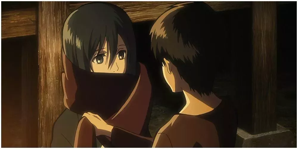 9 Eren le dio su bufanda a Mikasa cuando dijo que tenía fríoAttack On Titan: 10 veces que Mikasa demostró que ama a Eren